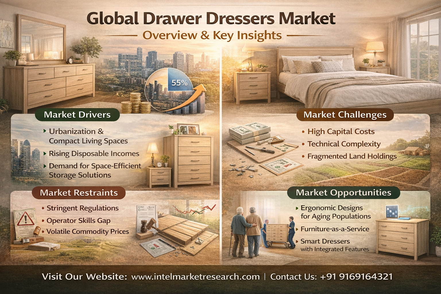 This report provides comprehensive analysis of the global drawer dressers market—from macro industry trends to micro-level insights on market size, competitive dynamics, technological innovations, and regional growth patterns. The analysis enables stakeholders to identify profit opportunities while navigating material price volatility and shifting consumer preferences.