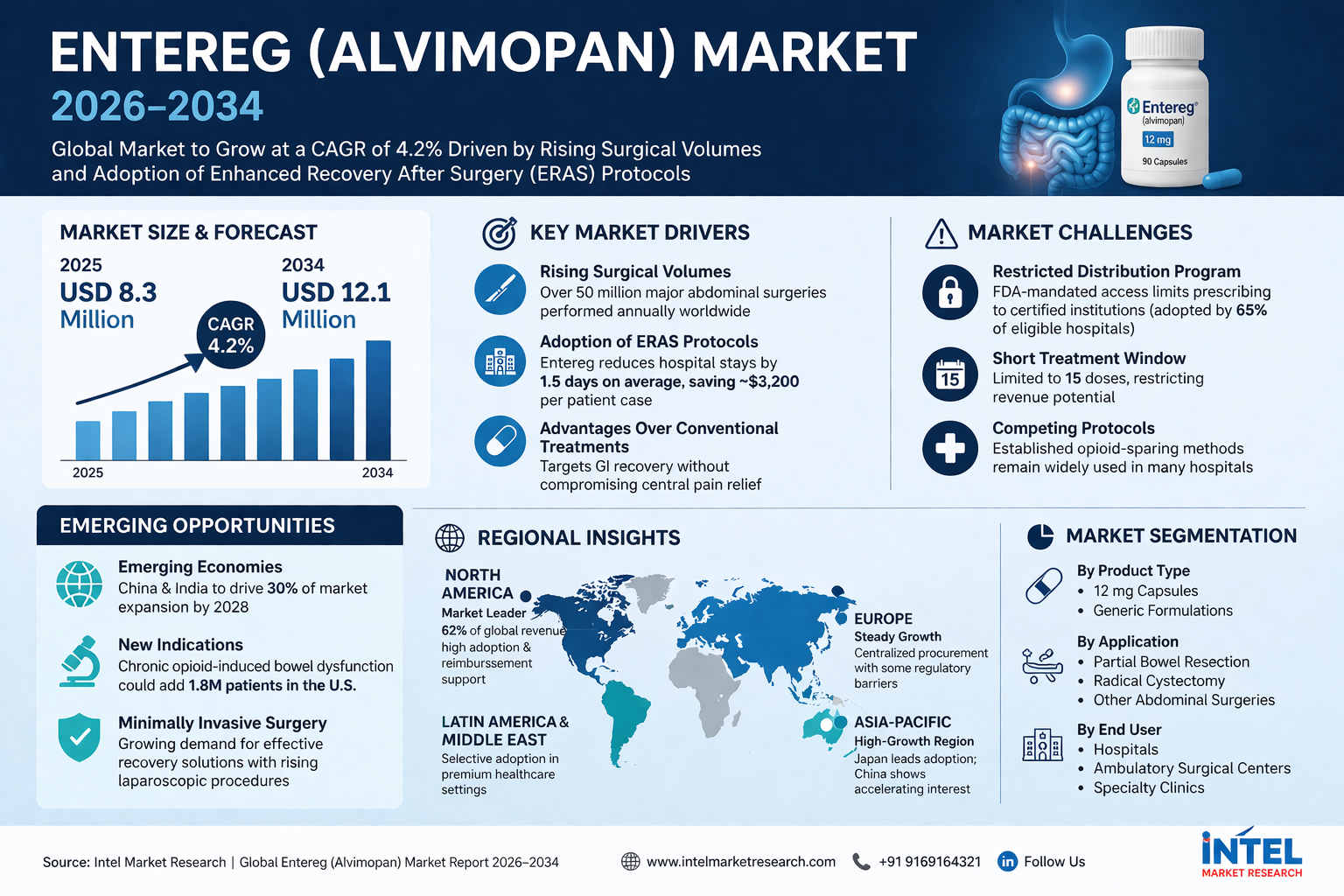 Entereg (alvimopan) Market to Register 4.2% CAGR Over the Forecast Period 2026–2034