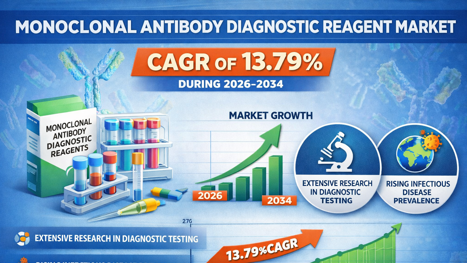 The global monoclonal antibody diagnostic reagent market is poised for significant expansion over the next decade as demand for precise, rapid diagnostic solutions rises across healthcare systems worldwide. The market size is expected to grow from approximately US$ 12.82 billion in 2025 to US$ 41.02 billion by 2034, recording a CAGR of 13.79% during 2026–2034. This strong growth is driven by increasing prevalence of chronic diseases such as cancer and infectious conditions, technological advancements in monoclonal antibody (mAb) production, and heightened focus on personalized and early disease detection methodologies. Monoclonal antibody reagents are critical in enabling specific detection of biomarkers, which makes them indispensable in modern in vitro diagnostics and clinical laboratories.